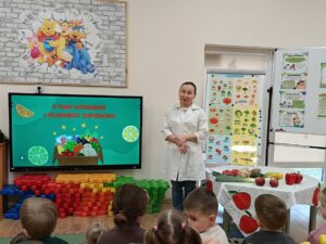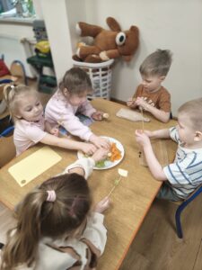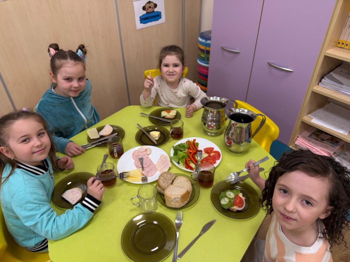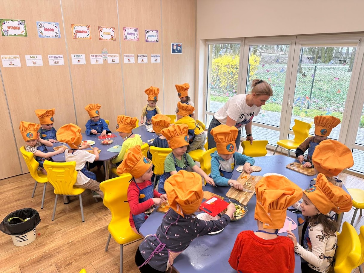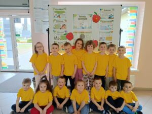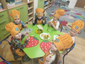 7 kwietnia w naszym przedszkolu obchodziliśmy Światowy Dzień Zdrowia. Celem tego wyjątkowego dnia było kształtowanie u dzieci postaw prozdrowotnych oraz utrwalenie dobrych nawyków żywieniowych. Podczas prelekcji pani intendent Aleksandry Ignasiak w ramach projektu edukacyjnego ,,Gdy dorosnę będę…” przedszkolaki zdobyły informacje na temat tego, kim jest dietetyk oraz czym zajmuje się intendent. Co więcej dzieci dowiedziały się, jak ważna jest zbilansowana dieta, picie wody oraz regularny sen. Tego dnia wspólnie wykonaliśmy prace plastyczne przedstawiające owoce wspomagające nasze zdrowie i odporność. Dzieci uczyły się rozpoznawać wartościowe produkty, takie jak owoce i warzywa, a w kolejnym dniu wykonały ,,talerze zdrowia”. Wiele radości sprawiły naszym przedszkolakom samodzielnie przygotowane zdrowe kanapki oraz sałatki owocowe. Dziękujemy wszystkim dzieciom za aktywne uczestnictwo, a rodziców zachęcamy do kontynuowania zdrowych nawyków.